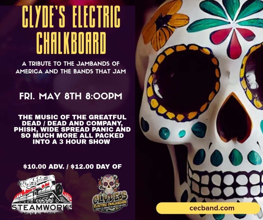 Clyde’s Electric Chalkboard is a fresh, high-energy tribute to the great American jam-band tradition—where improvisation, groove, and musical exploration take center stage. Blending the psychedelic spirit of the Grateful Dead, the precision funk of Phish, the Southern fire of the Allman Brothers, and the modern jam renaissance, the band brings a vibrant, electrified celebration of the genre’s most iconic sounds.